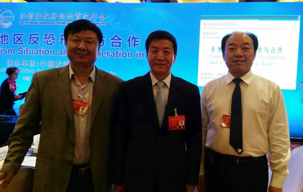 2015年5月25至26日,贾宇校长率我校反恐怖主义研究院代表参加了在北京国际饭店举行的亚信非政府论坛首次年会。贾宇校长在大会全体会议上与国外前政要互动,并在“亚洲地区反恐形势与合作”圆桌会议上发言。