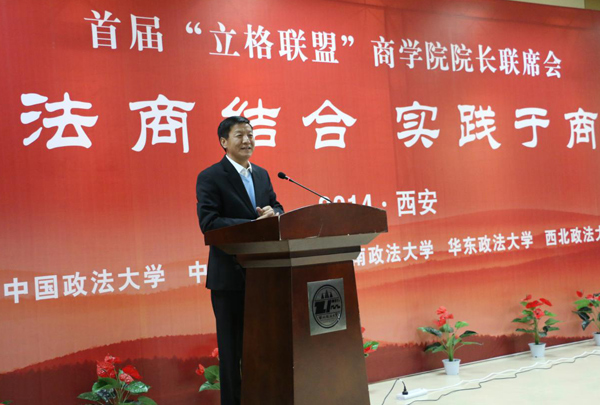 校长贾宇教授莅会并致辞,明确提出“市场经济就是法治经济”,商学以经济与市场为主要研究领域,更要与法治相结合,依法发展经济、规范市场。十八届四中全会的召开为政法大学商学院发展提供了难得的历史机遇,并表示“政法大学商学院的春天已经到来”,要建设法制经济下的商学院。贾宇校长最后表示,期待相关高校在“立格联盟”体制框架下,精诚合作、相互交流,借“全面推进依法治国”的东风,认真开展相关研究,在中国商学院中独树一帜,做出我们自己的独特贡献。