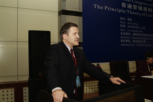 大会总报告人Isidoro Blanco Cordero教授作题为《The Principle/Theory of Universal Jurisdiction(普遍管辖权原则/理论)》的报告