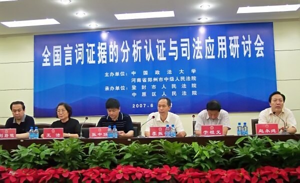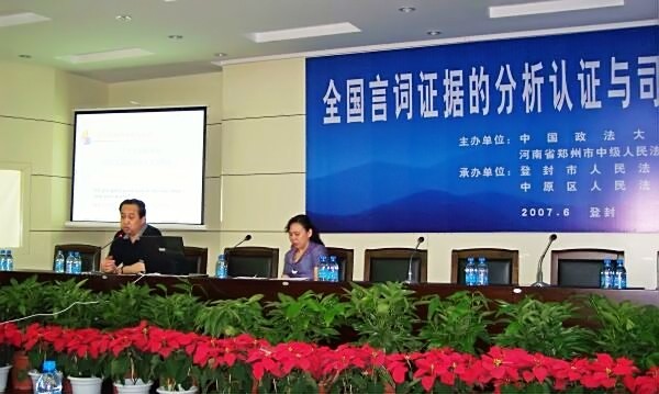 2007年6月16日至17日,首届“全国言词证据的分析认证与司法应用研讨会”在河南省郑州市登封人民法院成功举办。西北政法大学外国语学院刘蔚铭教授和马庆林教授出席了本次学术研讨会。刘蔚铭教授应邀做了大会发言。在大会发言上,刘蔚铭教授通过国外语言证据经典案例,结合中外语言证据研究现状、语言证据的分类和应用做了详细阐述,取得满意效果。