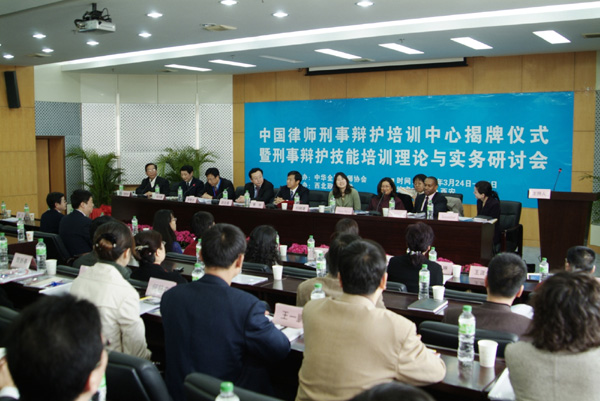 2007年3月24日,中国律师刑事辩护培训中心在西安揭牌。该中心由中华全国律师协会与西北政法大学合作成立,是专门对律师进行刑事辩护技能培训的机构。