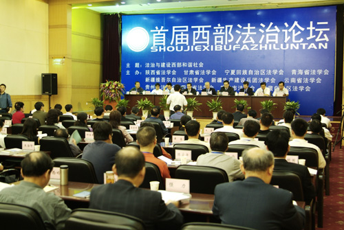 2006年9月18日,由中国法学会积极倡导,由西南、西北10省、区和新疆生产建设兵团法学会共同发起和主办、陕西省法学会承办的首届“西部法治论坛”在古城西安隆重召开。中国法学会副会长罗锋在开幕式上作了重要讲话,陕西省省委常委、省委政法委书记宋洪武到会致辞。开幕式由陕西省法学会会长杨烈主持。陕西省委政法委副书记、秘书长路志强,陕西省委政法委副书记、省综治办主任郭明等领导出席。