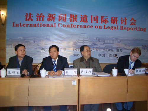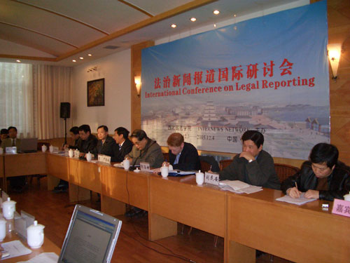 12月3日由西北政法学院与国际新闻组织—英特新闻(Internews)联合主办的“法治新闻报道国际研讨会”在西安陕西宾馆举行。西北政法学院副院长贾宇教授、英特新闻中国区主任郭汤姆(Tom Kellogg)先生、陕西省新闻工作者协会主席尹维祖在开幕式上讲话,会议由西北政法学院新闻传播学院院长慕明春教授主持。