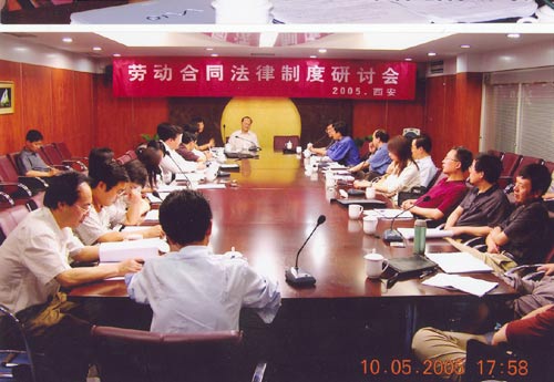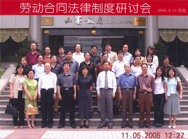 5月11日—13日,由我院主办、法学二系承办的劳动合同法律制度研讨会在我院隆重召开。我院副院长、劳动法专家郭捷教授到会致辞。国务院法制办陈培勇处长、陕西省劳动厅社会保障厅副厅长翟四虎、陕西省总工会秘书长陈一民到会祝贺。中国人民大学常凯教授、彭光华教授,安徽大学李坤刚教授等全国劳动法知名学者,以及陕西省高级人民法院、西安市中级人民法院、陕西省律师协会、陕西省劳动与社会保障厅、西安市劳动社会保障局等有关部门和西安海星现代科技股份公司、陕西煤航数码测绘集团股份有限公司、维美德西安造纸机械公司、西安航空动力控制公司等的代表共50余人参加了研讨会。我院法学二系劳动与社会保障教研室的谢德成、吴丽萍、刘华平、徐芳宁、梁高峰、高瑾、胡少英等教师参与了此次研讨。