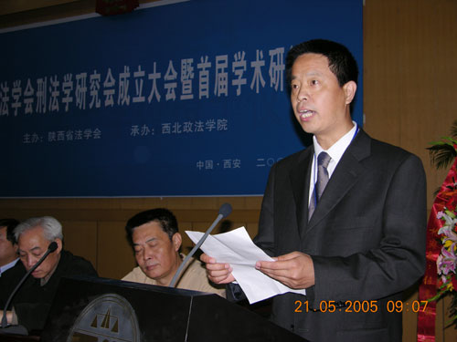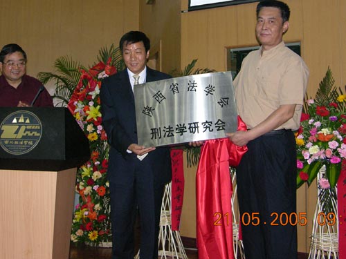 2005年5月21日,由陕西省法学会主办的“陕西省法学会刑法学研究会成立大会暨首届学术研讨会”在我院召开。来自司法厅的主管领导、省内高校法学专业的专家学者,法律实务界的法官、检察官、律师以及各新闻媒体记者等100余名代表参加了会议,我院200余名师生旁听了大会。