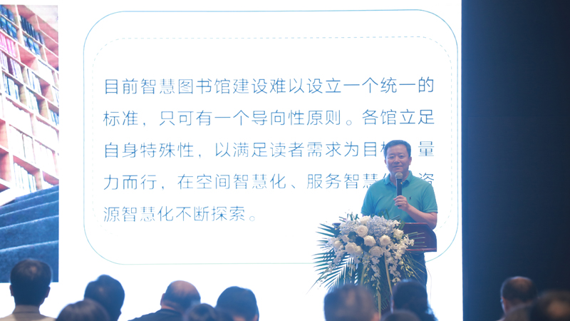 我校图书馆馆长张宏斌以《从小聪明到大智慧还有多远——关于智慧图书馆建设的点滴思考》为主题作了分享报告。他从“什么是智慧图书馆”“智慧图书馆建设的几个关键问题”“智慧图书馆的建设是否需要统一标准”和“我校图书馆在智慧图书馆时代的具体做法”这四个方面,详细介绍了智慧图书馆的概念与内涵、高校智慧图书馆建设过程中存在的问题以及我校图书馆的实践心得。中国索引学会副理事长叶艳鸣就智慧图书馆的“AI(人工智能)”“Big Data(大数据)”“Cloud(云计算)”三大概念作了《智慧图书馆理念与实践再思考》的主题报告。与会人员就微服务的技术架构、如何利用大数据思维应对文献资源建设困境、构建多元化的读者阅读体验等核心内容进行深入地交流探讨。