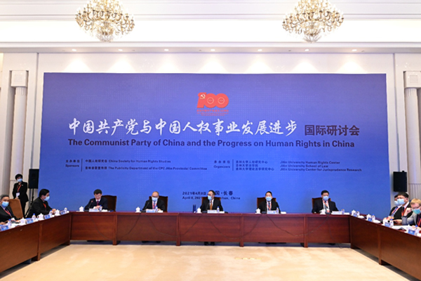 4月8日“中国共产党与中国人权事业发展进步”国际研讨会在吉林长春召开。本次研讨会由中国人权研究会、吉林省委宣传部主办,吉林大学法学院及吉林大学人权研究中心、理论法学研究中心承办。来自美国、英国、法国、德国、荷兰、奥地利、埃及等20多个国家和国际组织的专家学者、机构负责人、媒体人士、在华留学生和中国有关部门、研究机构、社会组织的代表100余人,以线上线下相结合的方式参加会议。