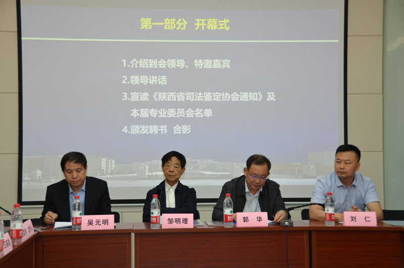 本次会议共分二个单元。第一单元开幕式中,陕西省司法厅刘仁副处长代表司法厅对会议表达祝贺,针对《司法鉴定程序通则》修订以来陕西省司法鉴定机构适用通则的现实状况进行总结,提出了鉴定程序的重要性,希望司法鉴定协会发挥纽带作用,物证类专业委员会对专业领域加强指导监督,提升陕西省司法鉴定的水平。陕西省司法鉴定协会会长吴元明介绍了陕西省司法鉴定协会的组织机构和业务范围,提出物证类司法鉴定专业委员会的责任重大,对全省司法鉴定机构的业务具有学术权威作用,要多举办业务交流、培训,多研究疑难问题、前沿问题,确保鉴定意见的科学可靠性。陕西省司法鉴定协会秘书长王高雄宣读了协会决定,决定聘任程军伟等11位专家为陕西省司法鉴定协会物证类专业委员会委员,公安学院程军伟为主任委员,闫小军、王霄为委员。随后协会会长吴元明颁发了聘书。