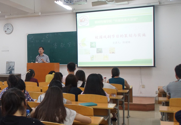 6月15日晚19:00,陕西广播电视台新闻综合频道《秦之声》制片人、国家一级导演陈健雄老师做客新闻传播学院“传媒实务大讲堂”系列讲座,在一号教学楼B204教室给政法学子们带来了一场题为“校园戏剧节目的策划与实施”的精彩演讲。讲座由新闻传播学院戏剧影视文学系副主任曾静蓉老师主持。