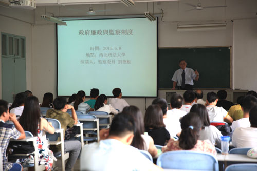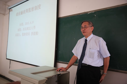 6月9日上午,长安经济法学论坛第104期在西北政法大学长安校区4号教学楼302室举行,台湾地区监察院监察委员、台湾铭传大学法学院兼职教授刘德勋先生应邀为西北政法大学师生做“政府廉政与监察制度”的专题演讲。讲座由西北政法大学经济法学院院长强力教授主持,西北政法大学校长贾宇教授、研究生院院长王健教授点评。来自陕西海普睿诚律师事务所的杜娟等三位律师以及西北政法大学本科生和研究生共100余人聆听了此次论坛。