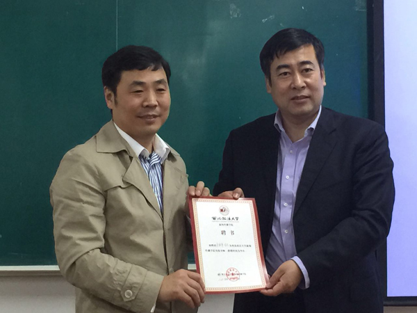 本次讲座的最后,新闻传播学院院长孙江教授代表学院聘请马宝军老师为“新闻传播学院实践导师”,并向马老师颁发了聘书。