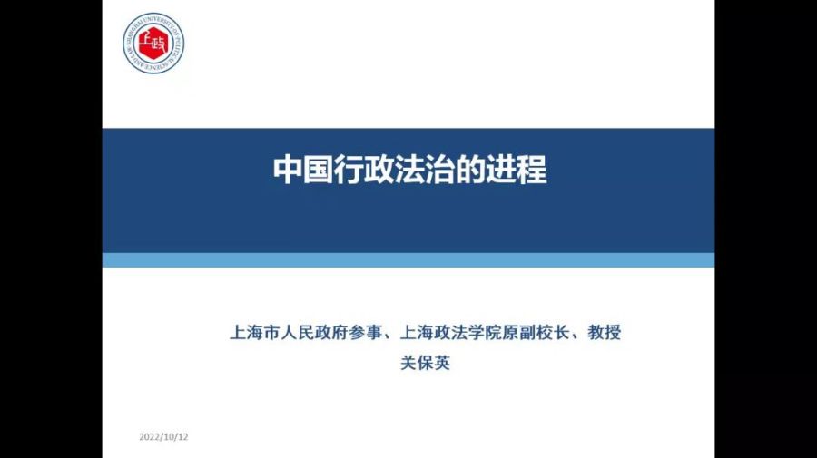 10月11日下午,由行政法学院(纪检监察学院)举办的西北政法大学85周年校庆系列学术讲座之《中国行政法治的进程》在线上顺利举行,主讲人为上海市人民政府参事、上海政法学院副校长、我校校友关保英教授。我校行政法学院(纪检监察学院)院长姬亚平教授主持讲座,校内外师生、学术界专家、律师等200余人在线上参加讲座。