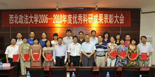 7月6日上午,西北政法大学2006-2010优秀科研成果表彰会在雁塔校区研究生综合楼隆重举行。校长贾宇教授,学术委员会主任赵馥洁教授,学术委员会副主任、校长助理汪世荣教授等出席会议。各位获奖作者,各学院主管科研的副院长,法学研究所、高教研究所、学报编辑部等部门负责人,科研处负责人,各学院科研秘书,科研处工作人员参加了本次表彰会。会议由副校长王瀚教授主持。