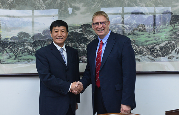 贾宇校长对亚当斯院长的来访表示欢迎,并愉快地回顾了两校自建立合作关系后在教师交流、学生互换学习、硕士培养项目中所取得的成绩,希望在今后的合作中进一步拓展形式、丰富内容、扩大规模,真正让两校的教师学生能够在交流合作中充分受益。贾宇校长还正式邀请西悉尼大学校长巴尼•格洛弗先生,副校长蓝亦晨先生以及副校长戴西•科克帕特里克先生访问我校推进高层次交流和合作。