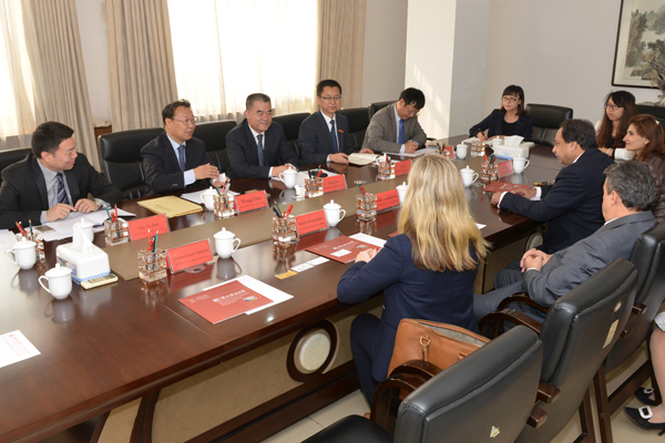 10月17日上午,校党委书记宋觉在我校长安校区会见了参加“第四届中国-亚欧法律论坛”的上合组织地区反恐怖机构执委会副主任普罗夫•安塔孔、巴基斯坦总理法律和司法特别助理阿斯塔•奥瑟夫•阿里及其夫人、巴基斯坦外交部法律顾问穆罕默德•萨利姆及立陶宛司法部欧洲法律司副司长露塔•克拉苏凯特等首批外宾代表。副校长王瀚及我校国际合作与交流处处长李立、国际法学院院长刘亚军教授、反恐研究院副院长张金平教授等陪同出席会见。