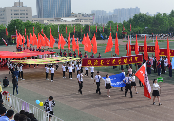 8时整,伴随着激昂的旋律,国旗护卫队、裁判员方阵和各学院师生方阵依次入场。师生们身着鲜艳的运动装,构成了一道道亮丽的风景线,各具特色的风采展示,赢得了全场阵阵喝彩,全面展现了我校师生蓬勃向上的精神面貌。