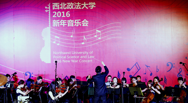 为了迎接2016年新年,12月27、28日晚,由党委宣传部、党委学工部、艺术教育中心和艺术团联合举办的“西北政法大学2016新年音乐会”在长安校区成功举行,这也是我校历史上第一次新年音乐会。宋觉、贾宇、赵健、李玉朝等学校领导,以及受邀出席的省委高教工委学工部长田民正,陕西师范大学、长安大学、西安外国语大学等多所兄弟高校领导嘉宾,同我校在校师生600余人一起观看了演出。