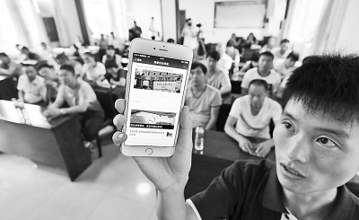 7月20日,西北政法大学新闻传播学院利用暑期组织部分大学生来到河北省兴隆县半壁山镇开展社会调研实践活动。在半个月的时间内,大学生们将利用所学的专业知识和传播技能为当地建立微信公众平台、拍摄微视频作品,帮助推销当地的土特产品和旅游资源,并借助新媒体辅助开展基层党建和社会公共服务事业。图为大学生在展示他们创建的微信公众平台“半壁山之窗”。