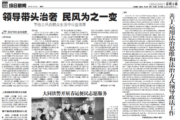 2014年是中国深化司法体制改革的启动年,在2013年推进劳教制度改革、涉法涉诉信访工作改革、司法权力运行机制改革和户籍制度改革基础上,习近平总书记在中央政法工作会议上的重要讲话进一步明确了加强和改进政法工作的方向,勾勒出中国特色社会主义司法制度的总体性蓝图。只有旗帜鲜明地坚持党对政法工作的领导,切实保障司法机关依法独立公正行使职权,将公平正义作为政法工作的生命线,政法战线才能真正为全面深化改革、实现“两个一百年”奋斗目标、实现中华民族伟大复兴的中国梦提供强有力的保障。