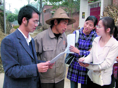 对那些握惯了锄头的手来说,填写这样的问卷,还是第一次。学生们本来以为农民会对“调查”不感兴趣,但没想到大家都很配合。在给大伙儿解释“公众参与”这个词时,在农村生活过的张波,用了提问的方式:“你们村的选举你参加了吗?”“最近政府出了些啥政策,你知道吗?”“他们很积极,最关心的是和自己的切身利益有关的东西。比如他们会问,政府出台政策,我们能不能参与?我们说的话,能不能反映出来?几乎每一个人都表示,如果有机会参与公共事务,他们都会参加的。”这是调查者郑金硕的感受。