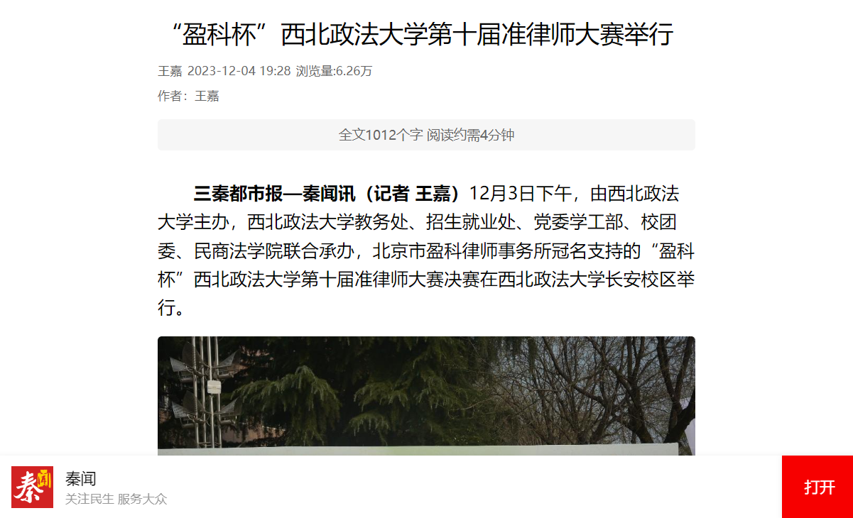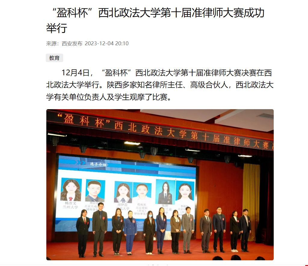 【西安发布、群众新闻网、三秦都市报】“盈科杯”西北政法大学第十届准律师大赛举办