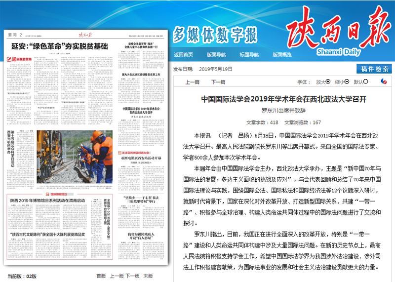 【陕西日报】中国国际法学会2019年学术年会在西北政法大学召开 罗东川出席并致辞
