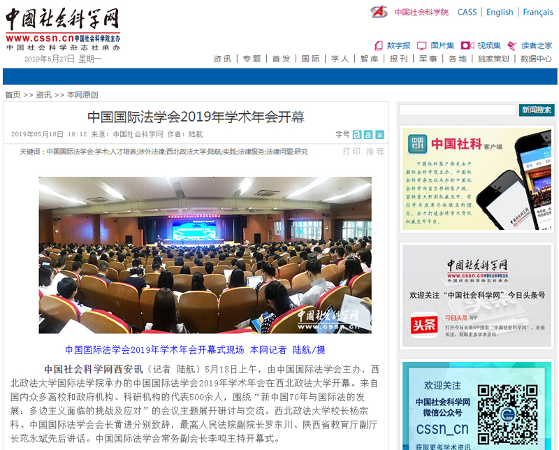 【中国社会科学网】中国国际法学会2019年学术年会开幕
