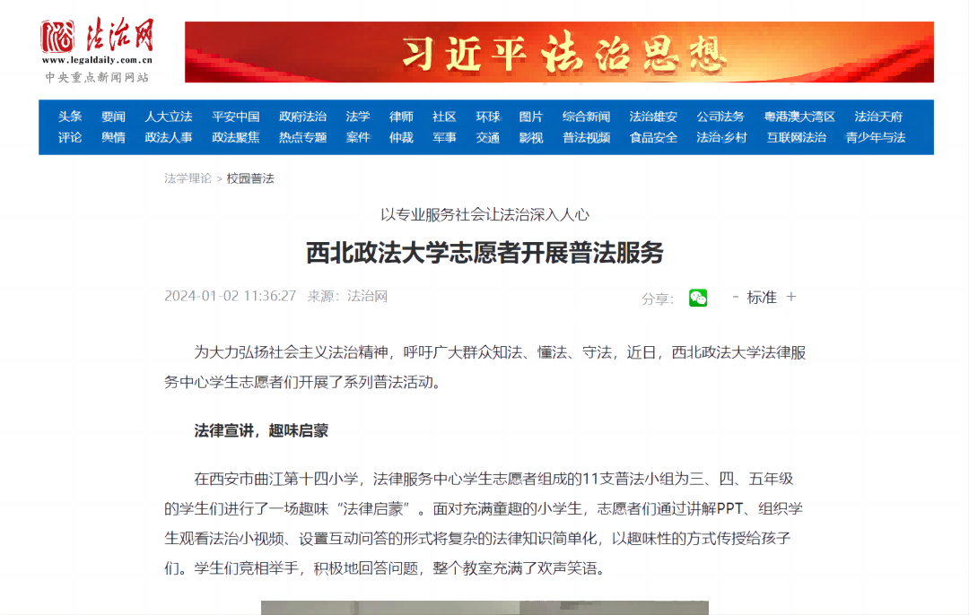 【法治网】以专业服务社会让法治深入人心——西北政法大学志愿者开展普法服务