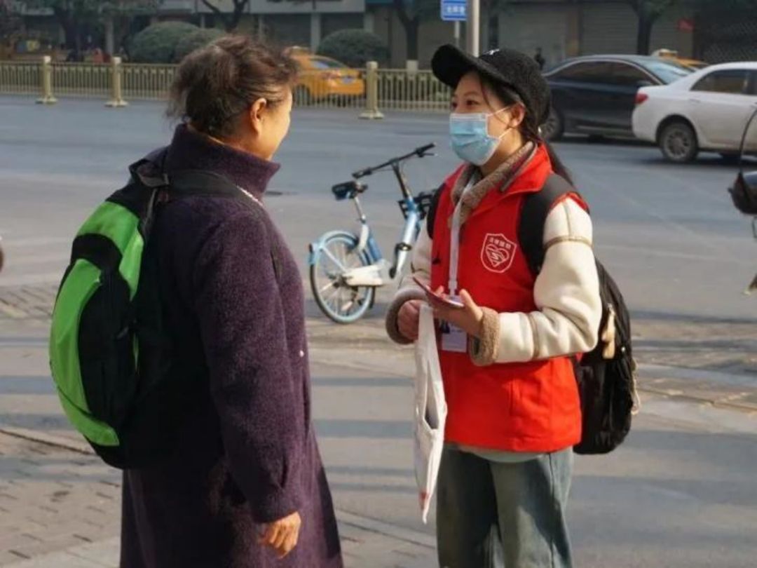 在西安市法律援助中心服务驿站,法律服务中心志愿者们帮助服务驿站向周边群众分发法律宣传资料,普及驿站的服务地点和功能,同时耐心地讲解法律知识。