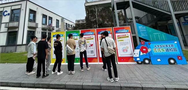 西北政法大学作为重点场次,增加了“金融科普花花车进校园”活动。花花车创新采用“花花车小课堂+AI科技展示区+趣味互动集市”三位一体的科普模式,以立德树人为导向,生动传播金融安全、心理健康、生殖健康等多元知识,使科普教育更加贴近学生的实际需求。