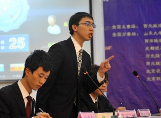 本届大赛的决赛辩题“航空公司托运宠物致死巨额索赔是否合理”则要求进入决赛的山东大学代表队和西安财经学院代表队的辩手们在直面现实存在的动物保护问题的同时,还要从从伦理、亲情、法律、哲学等多角度进行辩论。事实证明,经过前期比赛的理论积淀与实战演练,两支代表队表现出极高的论辩水平。正方山东大学代表队乘儒辩之风,展浩然正气,从宠物身上的市场价值、附加价值、精神价值入手,力证巨额索赔的合理性。而反方西安财经学院代表队几位辩手各具特色,列举大量实例呼吁保护动物应当理性,巨额索赔实不合理的观点。双方旁征博引、短兵相接,场上妙语连珠,场下掌声不断。