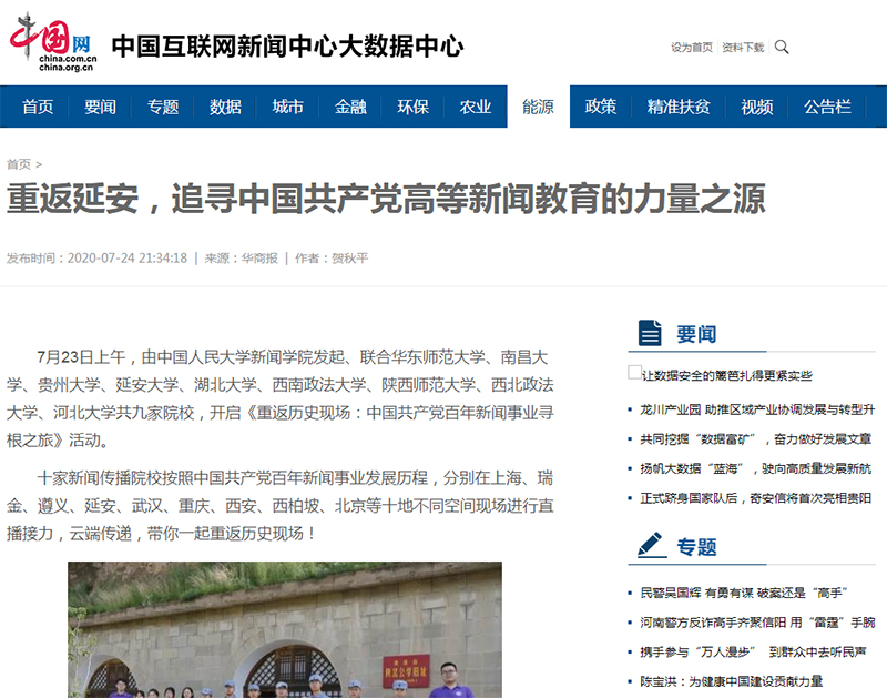 7月23日上午,由中国人民大学新闻学院发起、联合华东师范大学、南昌大学、贵州大学、延安大学、湖北大学、西南政法大学、陕西师范大学、西北政法大学、河北大学共九家院校,开启《重返历史现场:中国共产党百年新闻事业寻根之旅》活动。