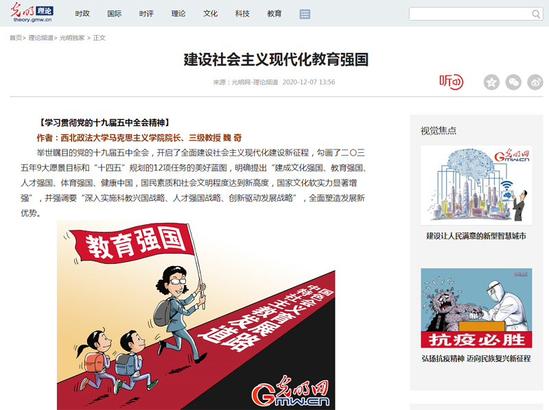 作者:西北政法大学马克思主义学院院长、三级教授 魏 奇