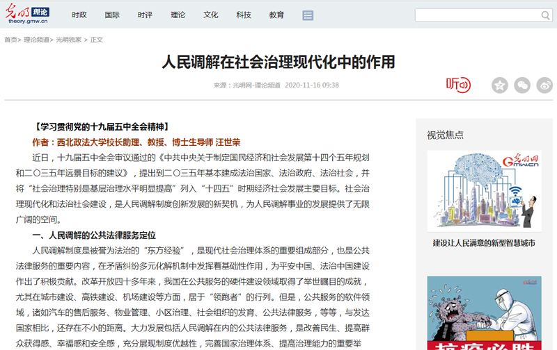 作者:西北政法大学校长助理、教授、博士生导师 汪世荣