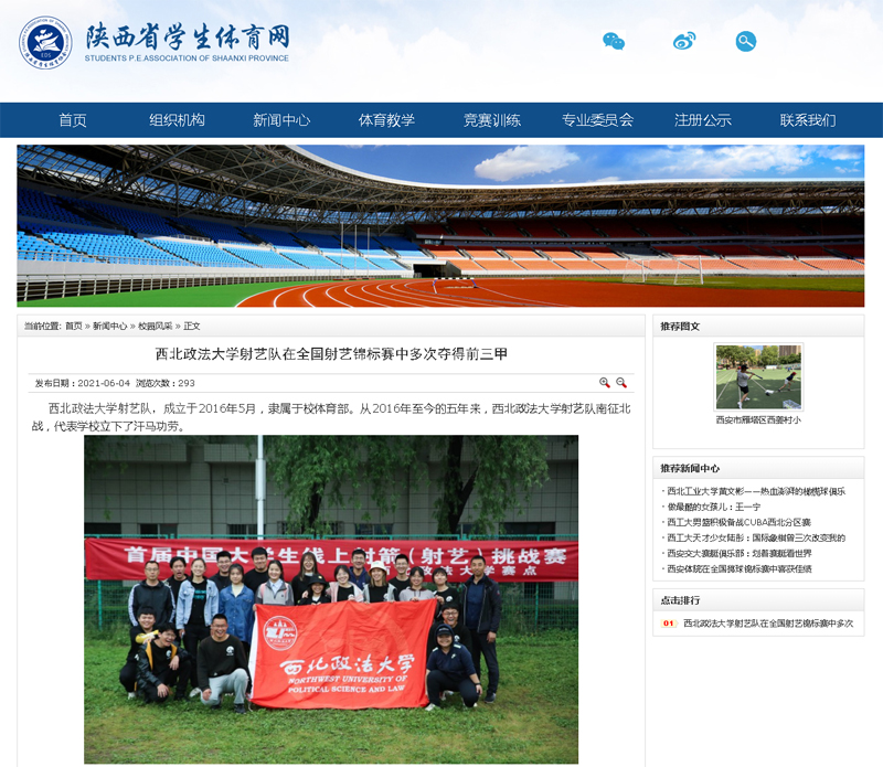 西北政法大学射艺队,成立于2016年5月,隶属于校体育部。从2016年至今的五年来,西北政法大学射艺队南征北战,代表学校立下了汗马功劳。