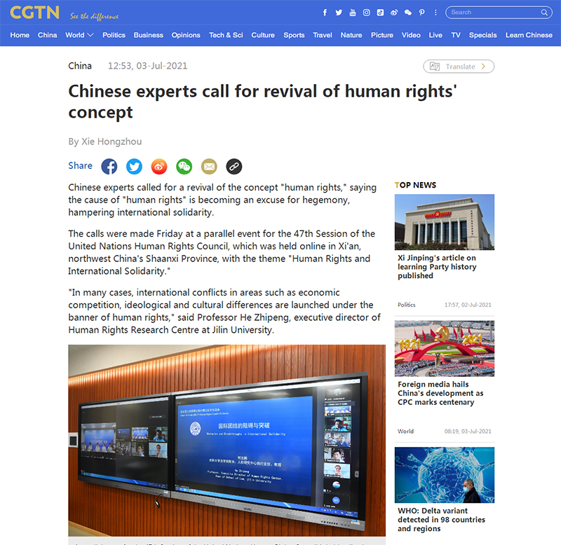 "In many cases, international conflicts in areas such as economic competition, ideological and cultural differences are launched under the banner of human rights," said Professor He Zhipeng, executive director of Human Rights Research Centre at Jilin University.