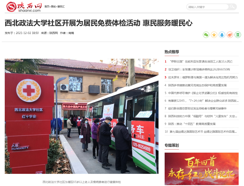 陕西网讯 为推动党史学习教育不断走向深入,扎实开展我为群众办实事,保障社区居民了解自我身体健康状况。12月2日,西北政法大学社区联合长延堡社区卫生服务中心免费为辖区65岁以上老人及慢病患者进行健康体检。