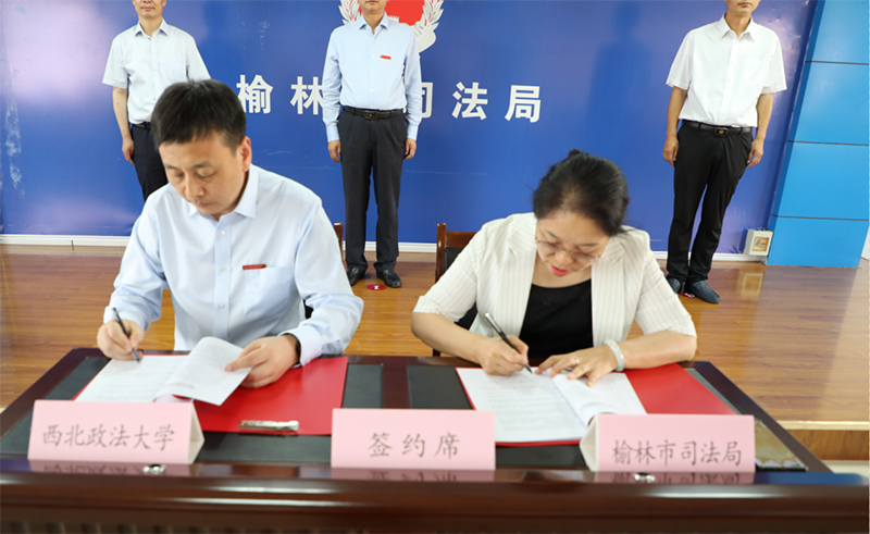 6月16日上午,西北政法大学与榆林市司法局战略合作协议签约暨基地揭牌仪式在榆林市司法局举行。西北政法大学校长范九利、副校长马朝琦、校长助理汪世荣,市委政法委副书记胡榆宏,榆林市司法局党组书记、局长刘静妮出席仪式。榆林市司法局副局长李国荣主持仪式。西北政法大学有关学院领导、市司法局领导班子及各科室、下属单位负责人参加仪式。