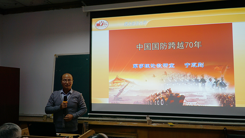 11月15日上午9点,离退休党委在离退休活动中心举办“不忘初心 牢记使命”专题学习,邀请我校反恐怖主义法学院军事学博士宁永刚老师,进行了题为“中国国防跨越70年”的专题讲座。讲座由离退休党委副书记边晓宏主持,离退休党委委员、支部委员和党员近40人参加学习。