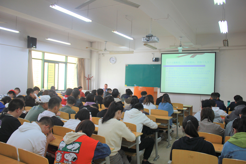 学院党委副书记寇汉军以《大学生党员的初心与使命》为主题,从共产党人的初心与使命、青年学生的初心与使命、大学生党员的初心与使命这三个方面进行了详细的讲解。寇汉军从党的旗帜、党的历史、党的擘画这三个角度对中国共产党的诞生、成长、革命、建设和改革做了生动详细的介绍,一起探寻了中国共产党人的初心和使命。同时又结合习近平同志在陕北的知青岁月的艰苦奋斗经历,告知新时代青年人一定要志存高远,坚定理想信念,脚要踏实地,开拓创新,勇做时代弄潮儿,争做国家未来之栋梁。