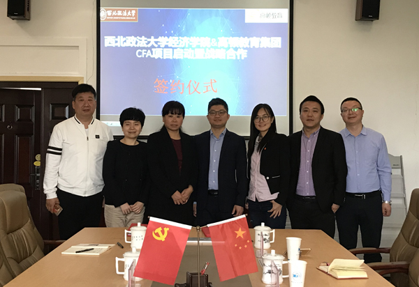 4月25日上午,我校经济学院与高顿教育集团在学院会议室举行了“CFA项目”签约仪式。出席此次仪式的嘉宾有高顿教育集团副总裁杜敏、西北区域高校合作经理赵飞、西北区域高校合作经理刘全红、高校事业部李红红和经济学院相关领导,创新创业孵化与教育研究院、学院办公室、教务办负责同志等。仪式由教学副院长徐梅主持。
