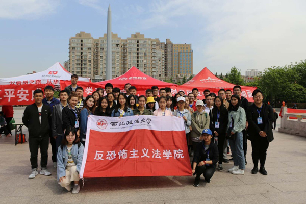 为了贯彻落实党的十九大提出的“坚持总体国家安全观”的基本方略,贯彻落实《教育部关于加强大中小学国家安全教育的实施意见》精神,深化学生专业学习实践教育,提高广大群众的自我防范意识,增强广大群众的国家安全意识,4月15日,在党的十九大后第一个全民国家安全教育日,围绕“开拓新时代国家安全工作新局面”主题,反恐怖主义法学院与西安市公安局长安分局共同在长安广场开展全民国家安全教育日普法宣传活动。