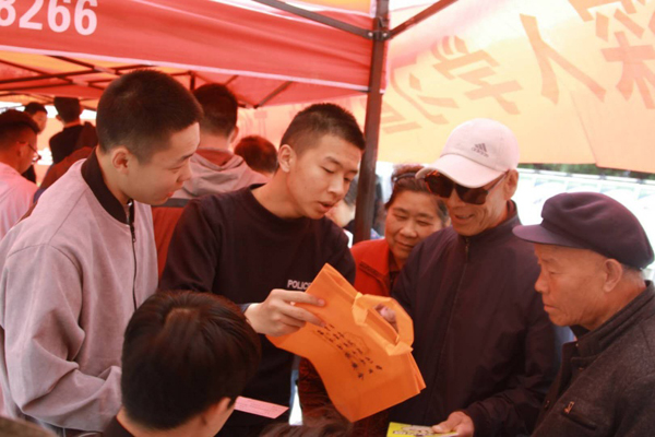 反恐法学院学生在公安民警的协助下,通过设置咨询台、宣传标语等方式,向过往群众和周边商户发放《宪法》《国家安全法》《国家情报法》《反恐怖主义法》《反间谍法》《网络安全法》等法律法规宣传单,并向群众讲解有关国家安全法律法规和保密知识,现场解答群众咨询。