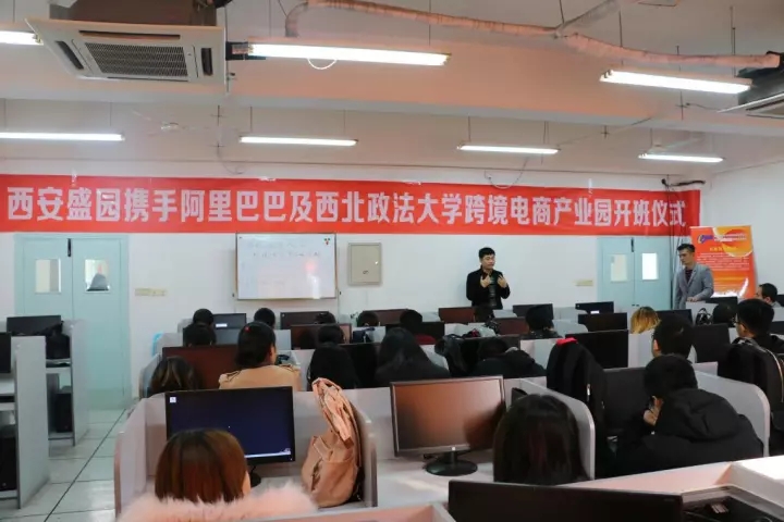 11月30日上午,西安盛园携手阿里巴巴及西北政法大学跨境电商产业园开班仪式在我校举行。阿里巴巴西北地区人才项目负责人杨蒙,西安盛园电子商务服务有限公司总经理李扬,阿里金牌讲师锦秋,我校商学院电子商务系主任王卫东副教授、教师何萱、方丽娟、于菊珍参加了此次开班仪式。