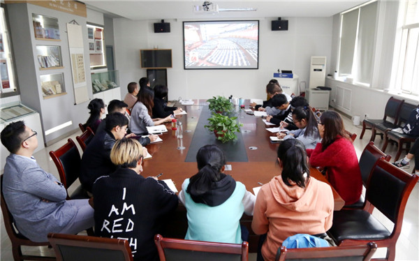三、学院党委中心组组织开展学习十九大精神专题学习会。11月8日下午,学院党委中心组组织开展学习十九大精神专题学习会,学院领导、党委委员、党支部书记及办公室党支部全体党员参加了学习会,会议由党委书记冯冬梅主持。冯冬梅以十九大报告中的20个经典问题为线索,从大会主题、历史方位、主要矛盾以及习近平新时代的中国特色社会主义思想等方面出发,带领党员教职工们深入学习党的十九大精神。冯冬梅要求各支部以学习报告原文为主,掀起学习党的十九大精神的高潮,以学懂、弄通、做实为根本要求,将党的十九大精神与实际工作结合起来。副院长王俊荣提出,要逐章节地学习十九大报告,认真做好笔记,将党的十九大精神与自我批评、自我教育相结合。党委副书记兼副院长刘驰表示,要在学生党支部召开党员会议,开展知识竞赛,把党的十九大精神落在实处,做到入脑、入心。