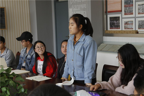 五、召开2017级少数民族学生学习党的十九大精神座谈会。11月10日上午,2017级少数民族学生座谈会在致知楼何微纪念馆召开。2017级辅导员徐鹏、巩飞和2017级近20名少数民族学生参加了此次会议,在徐鹏的带领下,与会人员认真学习了党的十九大报告,并结合自身的思想实际分享了各自的学习体会。座谈会的召开,及时向少数民族学生宣讲了党的最新政策,在少数民族学生当中开展爱国爱校教育同时也有助于少数民族学生更好的了解国情国策。
