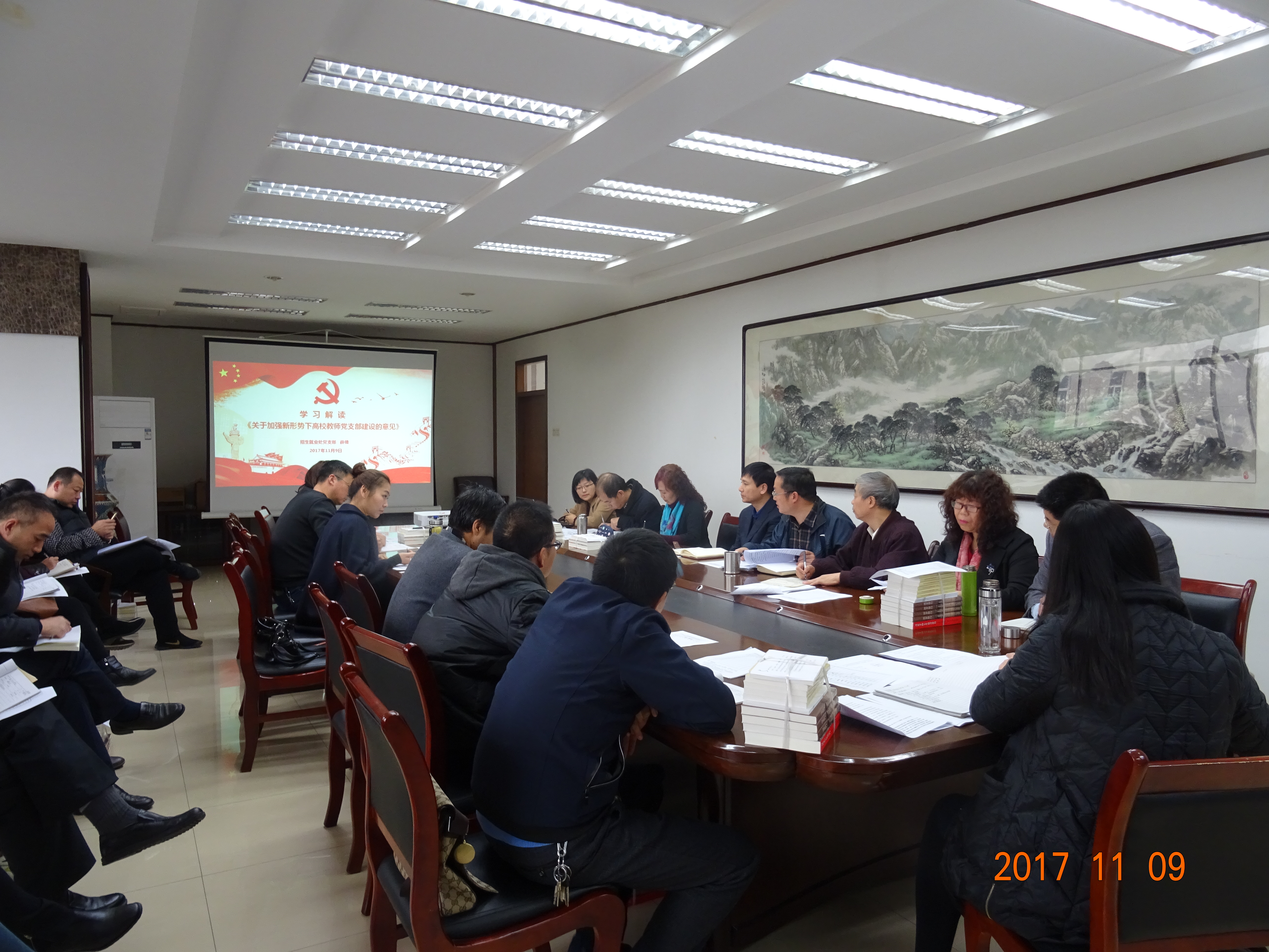 11月9日,按照校党委安排部署要求,机关党委在长安校区校务楼4层大会议室组织召开今年第七次集体学习扩大会议,集体学习党的十九大精神。校纪委书记肖道远出席并讲话,机关党委副书记胡昌日主持,机关党委委员、各党支部书记参加。