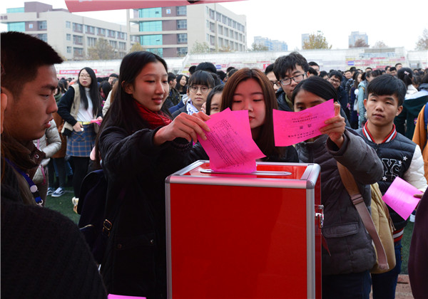 11月25日,西安市长安区第十八届人大代表韦曲街道第二十二选区选举大会在我校长安校区田径场举行。我校选区12000多名选民参加了投票选举,投出了自己神圣的一票,从2名候选人中选举产生了1名代表。