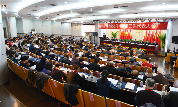 11月25日上午,中国共产党西北政法大学第三次代表大会开幕式暨第二次全体会议在长安校区校务楼二楼报告厅召开。省委高教工委书记董小龙,省委组织部宣教干部处处长陈乃霞,省委高教工委组织部副部长许文学,省委高教工委组织部副调研员刘万斌出席了开幕式。学校163名正式代表及列席代表、特邀代表、各民主党派主委等特邀嘉宾参加了大会。贾宇同志致开幕词。大会秘书长赵健主持大会。