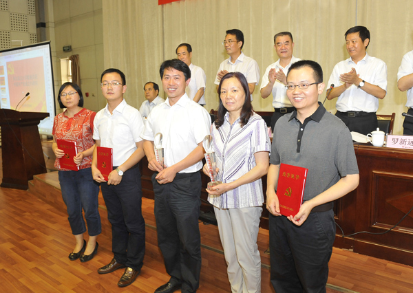 校党委副书记赵健宣读了《中共陕西省委高教工委关于表彰全省高校优秀共产党员、优秀党务工作者和先进基层党组织的决定》和《中共西北政法大学委员会关于表彰“庆祝中国共产党成立95周年”优秀征文的决定》。学校党委被评为全省高校先进校级党委,商学院党委、国际法学院教工第二党支部被评为全省高校先进基层党组织,马庆林、管华、王云被评为全省高校优秀共产党员,冯冬梅、潘俊武被评为全省高校优秀党务工作者。管华等同志撰写的《如何坚持高标准与守底线、依规治党与以德治党相结合》等36篇党建征文分获“庆祝中国共产党成立95周年”征文活动一、二、三等奖和优秀奖,新闻传播学院党委和法律硕士教育学院党委获优秀组织奖。校领导为受表彰的单位和个人颁奖。